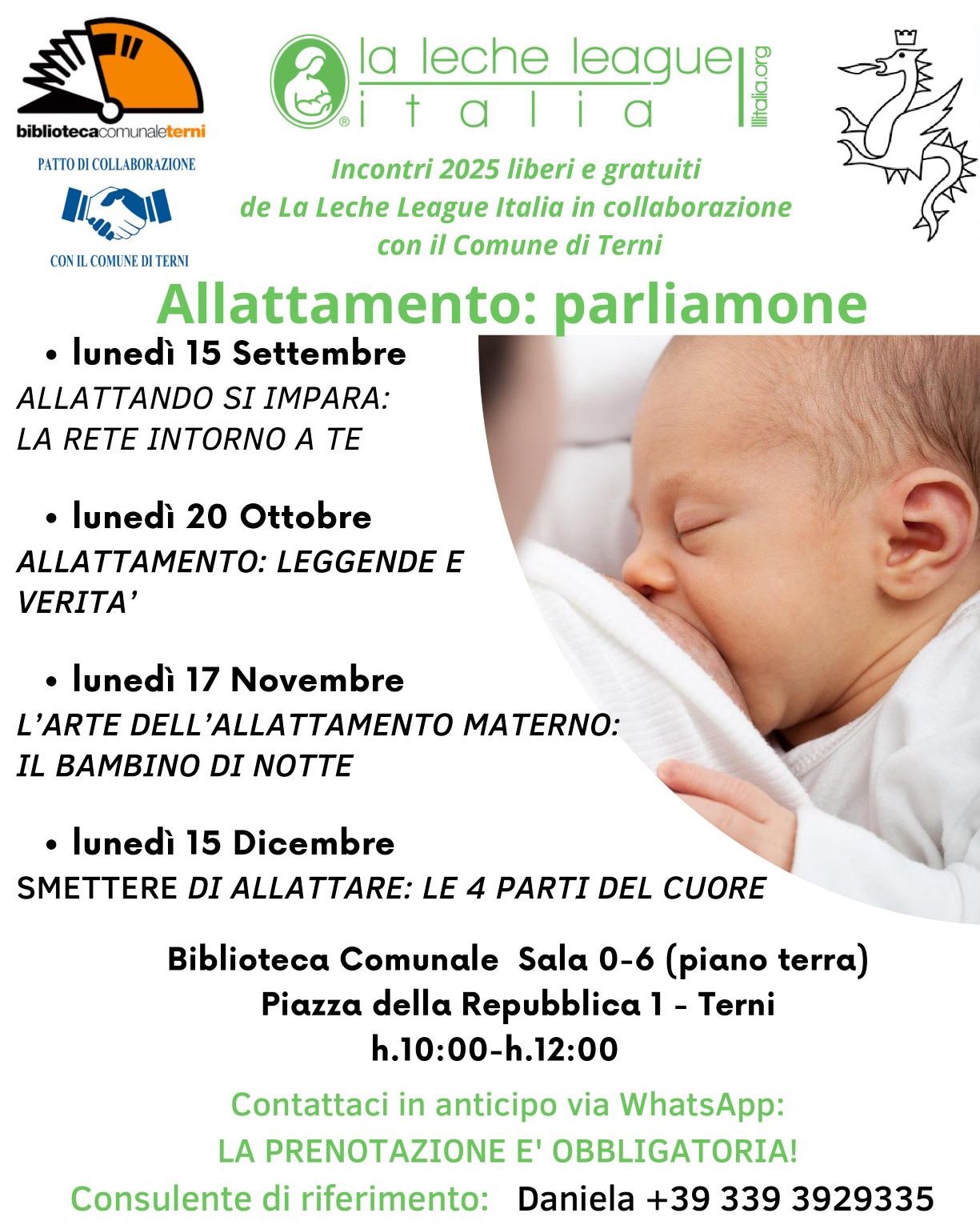 Un ciclo di incontri informativi gratuiti per le mamme e i genitori, organizzato in collaborazione con La Leche League Italia e il Comune di Terni.