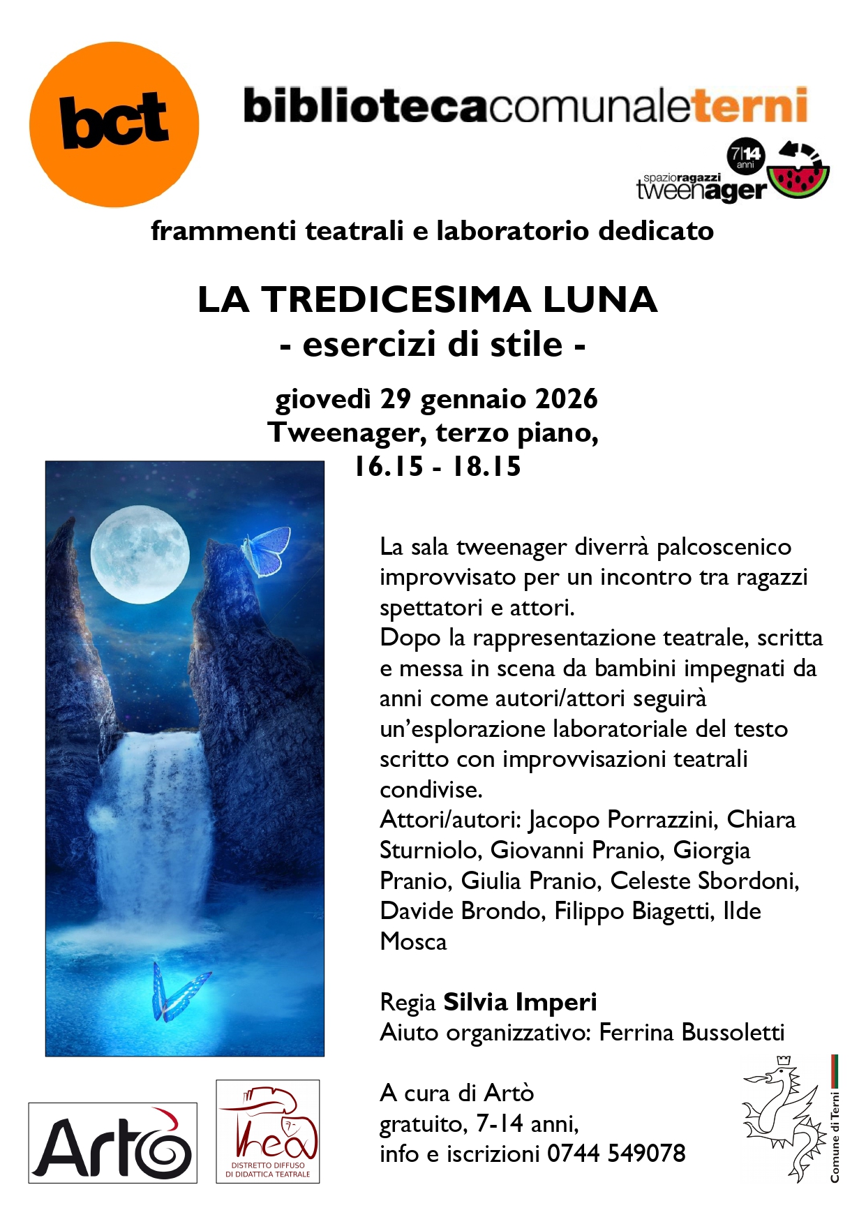 Dopo la rappresentazione teatrale, scritta e messa in scena da bambini impegnati da anni come autori/attori, sotto la guida della regista Silvia Imperi, seguirà un’esplorazione laboratoriale del testo scritto con improvvisazioni teatrali condivise.