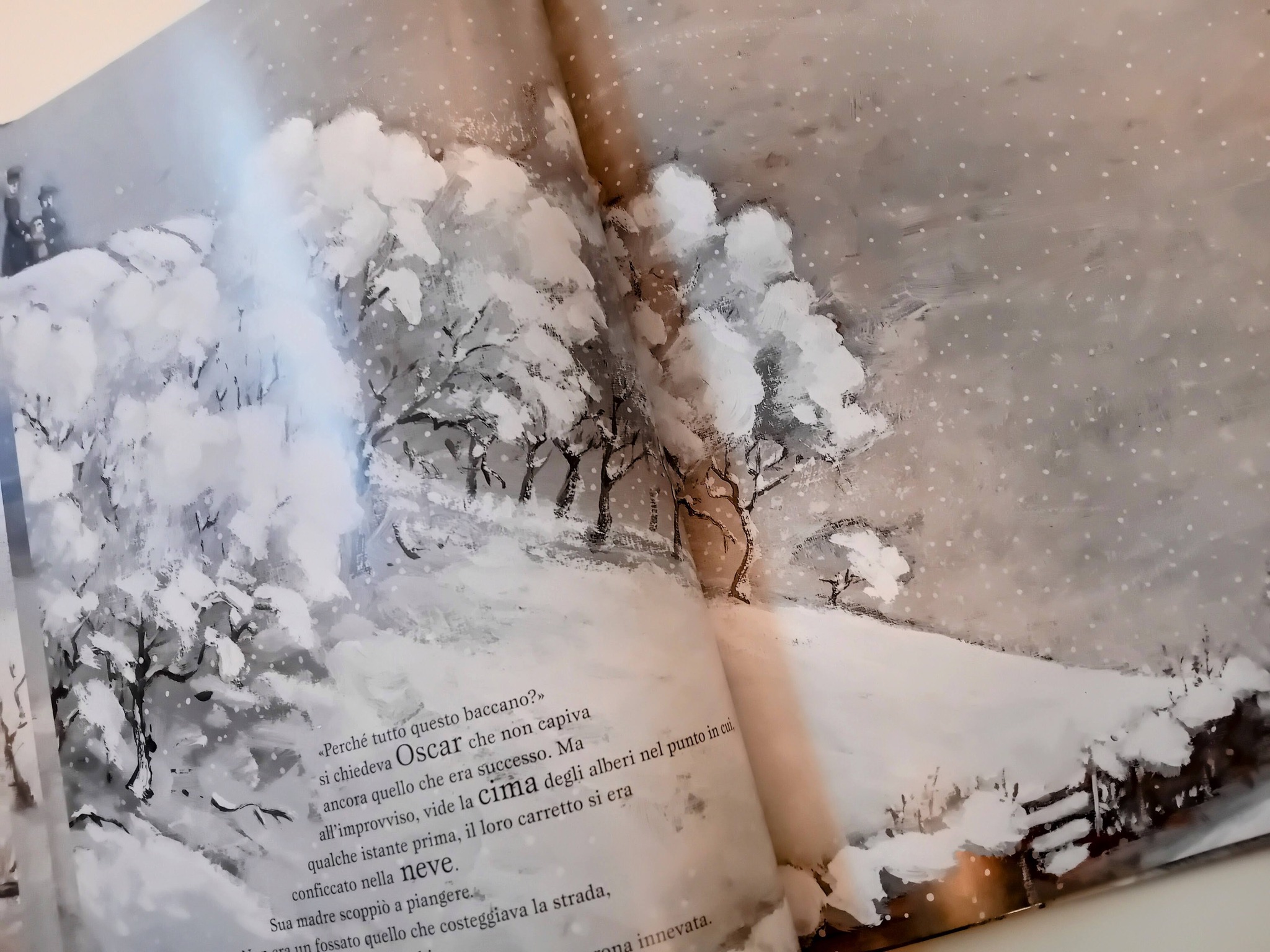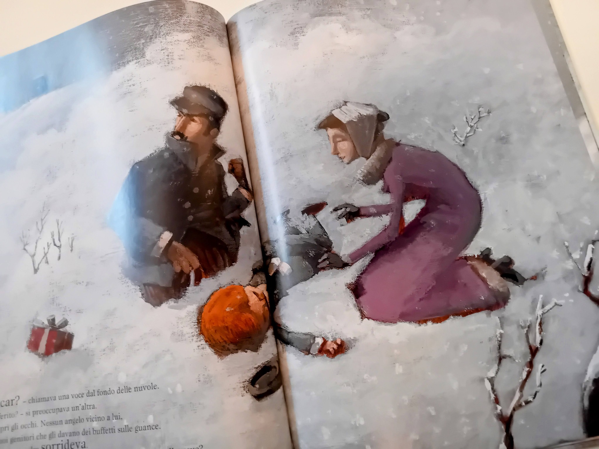 Terzo giorno del nostro calendario dell'avvento di libri e terzo tema: Albero di Natale. Il libro è Gli Alberi di Natale di Géraldine Elschner, Stéphane Girel, edito da Jaca Book. È la vigilia di Natale, tutto è bianco: i tetti delle case, gli alberi e le strade, su fino al cielo, carico di fiocchi di neve. Oscar è rannicchiato fra i suoi genitori nel piccolo calesse che li porta da nonno Simeone. A un tratto, spunta un'ombra e Oscar si sente sollevato di peso. Poi, d’un tratto, tutto si ferma. Cosa è accaduto? Sono stati gli alberi che fiancheggiano il sentiero ad aver salvato coi loro rami il volo di Oscar. Gli alberi lo hanno salvato! Ma questo è un miracolo...Le illustrazioni ci trasportano nell’atmosfera ovattata di una giornata invernale dell’Ottocento, prima rischiarata dal calore del fuoco che arde nel camino della casa di Oscar, poi nel gelo del sentiero che dovrebbe condurlo dal nonno per trascorrere insieme il Natale. La scelta dei colori, il clima, l’ambientazione del racconto ci fanno immergere nella magia del Natale e in quella dei quadri di Claude Monet, il padre dell’Impressionismo.
